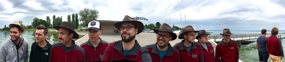 Dem schlechten Wetter davonfahren lautete die Devise für den Sonntag. Die einzigen Sonnensymbole in der Wetter-App wurden inder Ostschweiz angezeigt. Also Cowboyhüte ein weiteres Mal montiert und ab durch die Stadt Zürich – warum weiss keiner mehr so richtig –, Richtung Bodensee. Die im Stadtverkehr verlorene Zeit erschwerte uns dann die Suche nach einem Restaurant, welches auch noch nach 14 Uhr die Küche geöffnet hat. Am Hafen in Altnau TG hatte man aber Erbarmen und kredenzte uns Cordonbleu mit Zubehör. An eben diesem Hafen entstand auch unser inzwischen legendäres Panorama-Selfie, welches wir intern Panelfie nennen und oben abgebildet ist.